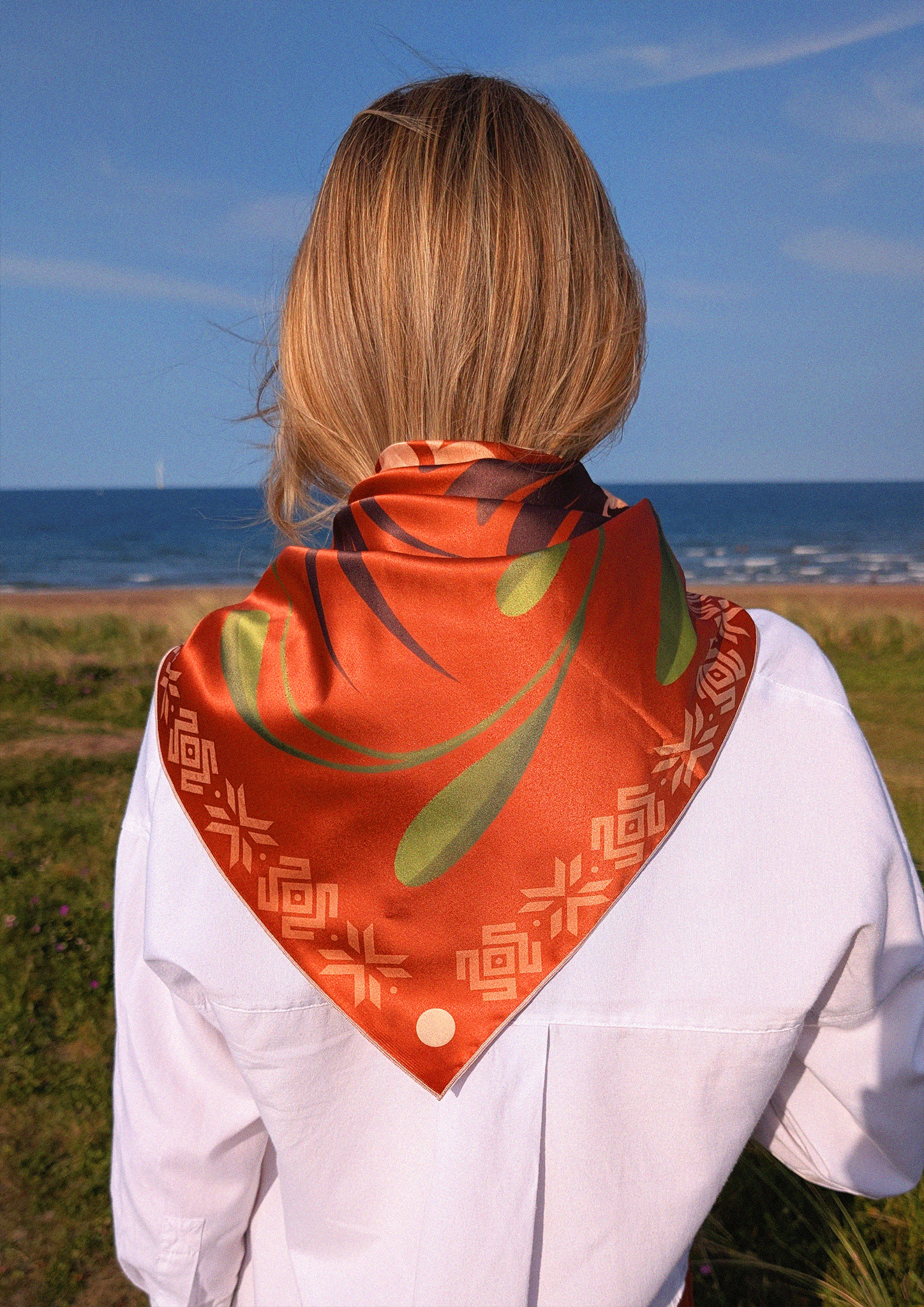 I have chosen warm earthy tones for this design to keep it grounded in the nature themes also keeping in mind the wearability aspect of this accessory. The natural tones make the scarf more versatile for everyday wear.